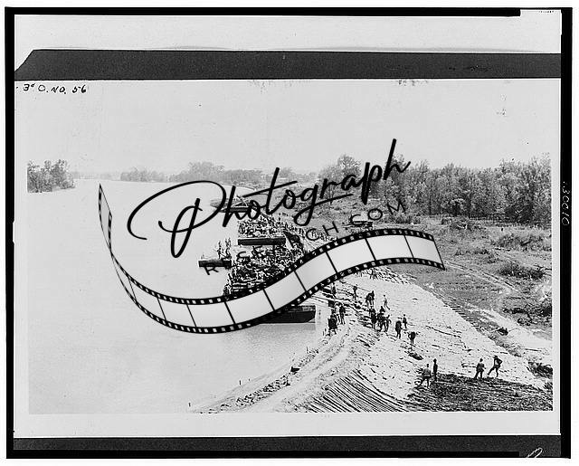 Title: Lakeport, Ark., Pole & plank supports for sacks & stone--Supports allow easy drainage for seepwater