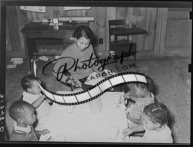 Title: Children in nursery school getting cod liver oil. Lakeview Project, Arkansas