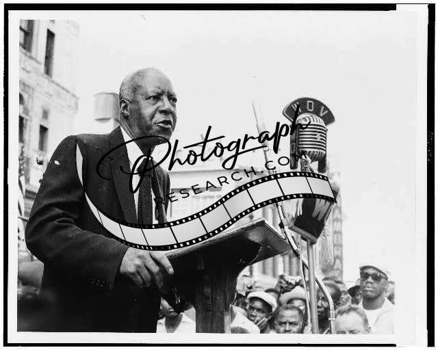 Asa Philip Randolph making speech,talk,Congressman Powell rally,A Hansen,1958