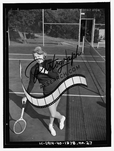 Lana Turner posing,tennis court,racket,Beverly Hills,CA,E Thiesen,1940 4