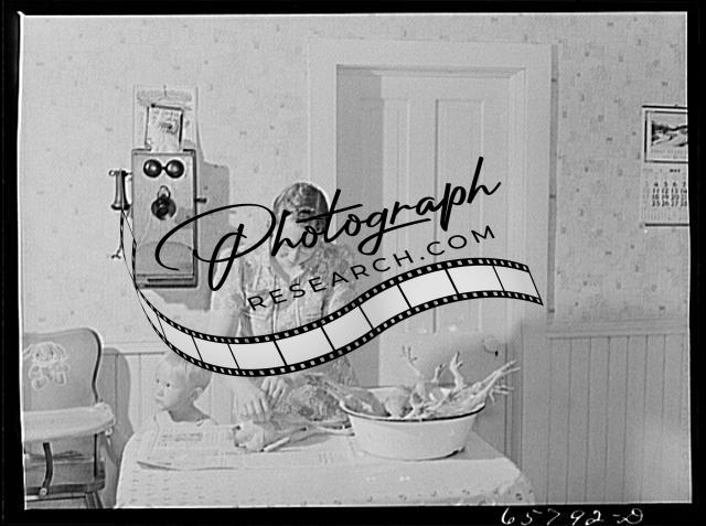 Title: Lancaster County, Nebraska. Mrs. Lynn May, FSA (Farm Security Administration) borrower, cleaning a chicken