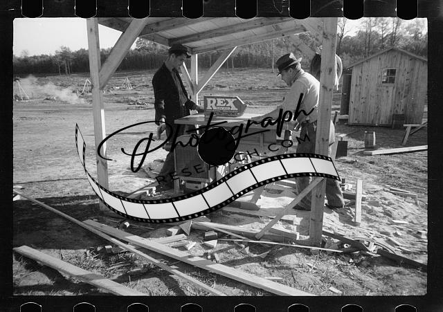 Workers,construction,laborers,Rex,saws,structures,lumber,1935