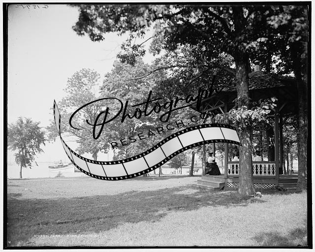 Perry Park,landscape pavilions,water bodies,boats,ships,Put-In-Bay,Ohio,OH,c1904