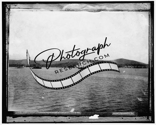 Landing Marines,burning village,Guantanamo Bay,Cuba,Spanish-American War,1898