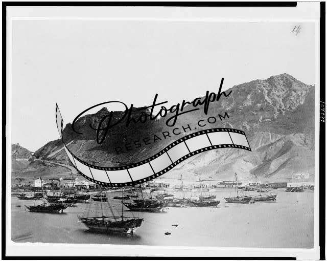 Ships,harbor,mountains,sailing,boats,Aden,Arabia,tour,Ulysses S Grant,1879