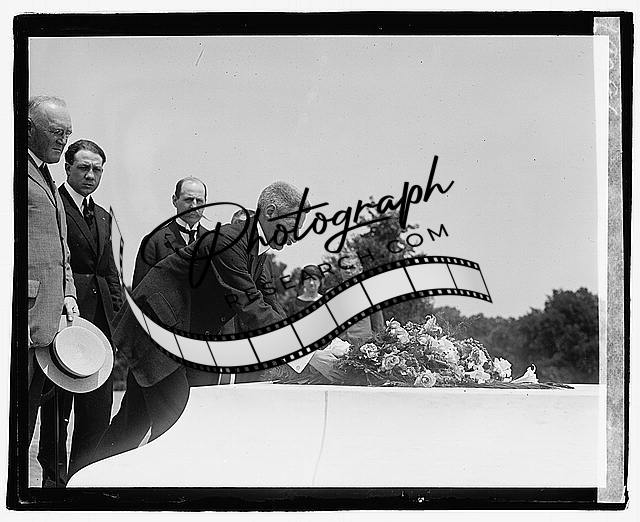 Unidentified man placing bouquet of flowers,1922