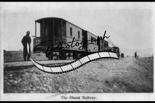 The Shansi Railway,locomotive,man standing behind caboose,1905-1926,RR tracks