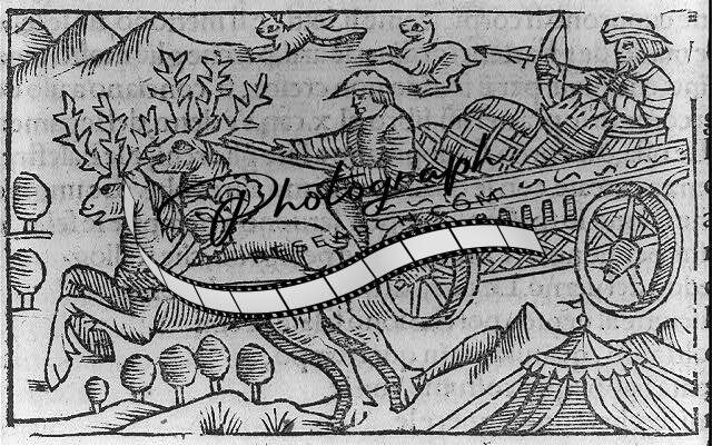 Lapps,Finns,reindeer,wagon,hunting rabbits,bow,1565