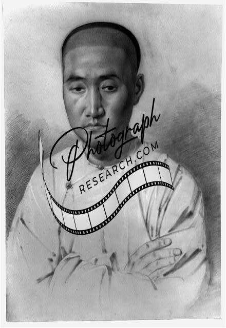 Portrait,Asian man,arms folded,charcoal drawing,portraits,clothing,dress,1860