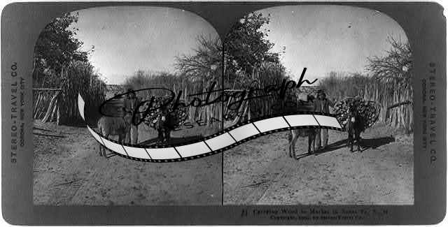 Carrying wood to market in Santa Fe,N.M.,New Mexico,c1909,Indian,donkeys