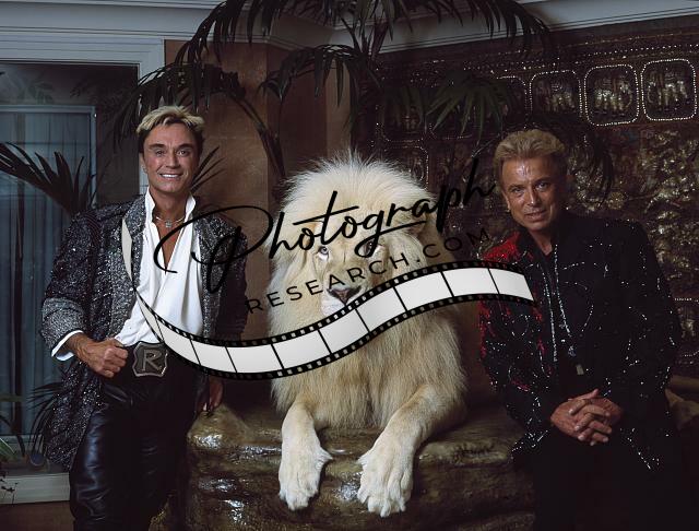 Title: Las Vegas, Nevada's headlining illusionists Siegfried & Roy (Siegried Fischbacher and Roy Horn) in their private apartment at the Mirage Hotel on the Vegas Strip, along with one of their performing white lions