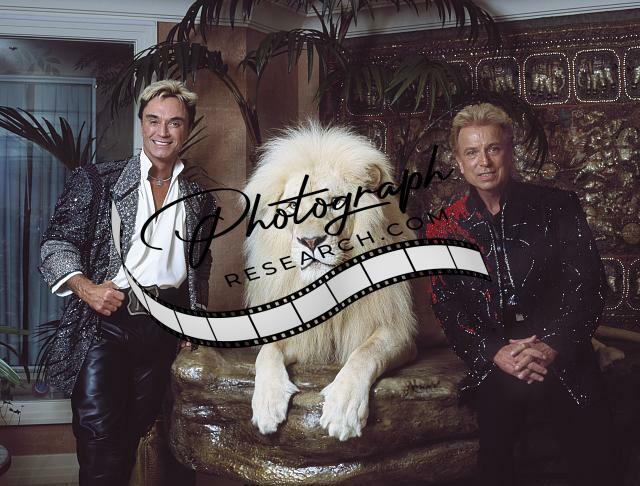 Title: Las Vegas, Nevada's headlining illusionists Siegfried & Roy (Siegried Fischbacher and Roy Horn) in their private apartment at the Mirage Hotel on the Vegas Strip, along with one of their performing white lions