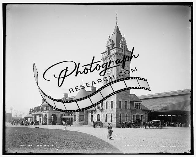 Union Station,railroad,building,terminal,way,clock tower,Portland,Maine,ME,c1904