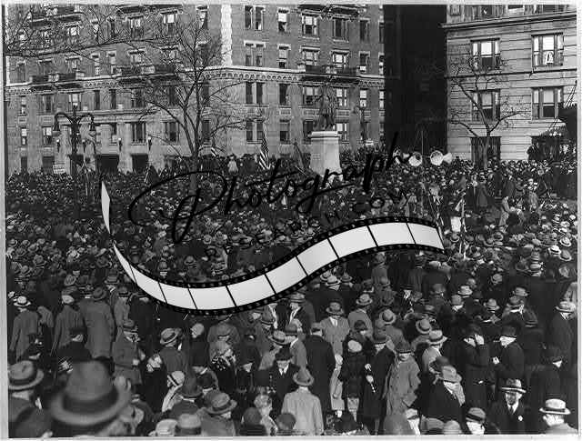 Crowd,statue of Louis Kossuth,Riverside Drive,N.Y.C.