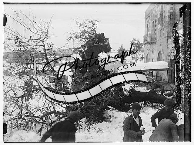 Snow in Jerusalem,1921. Fallen tree,Winter,Middle East,Matson Photo