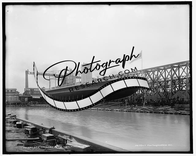 Steamer Columbia,ways,boats,ship industry,docks,piers,Wyandotte,Michigan,MI,1902