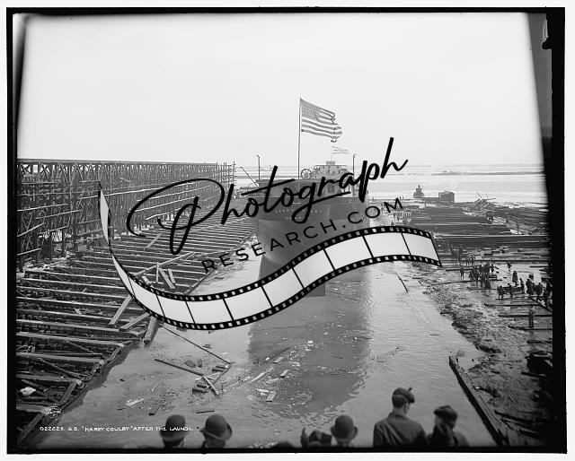 SS Harry Coulby after launch,freighter,cargo ships,boat,Wyandotte,Michigan,1906