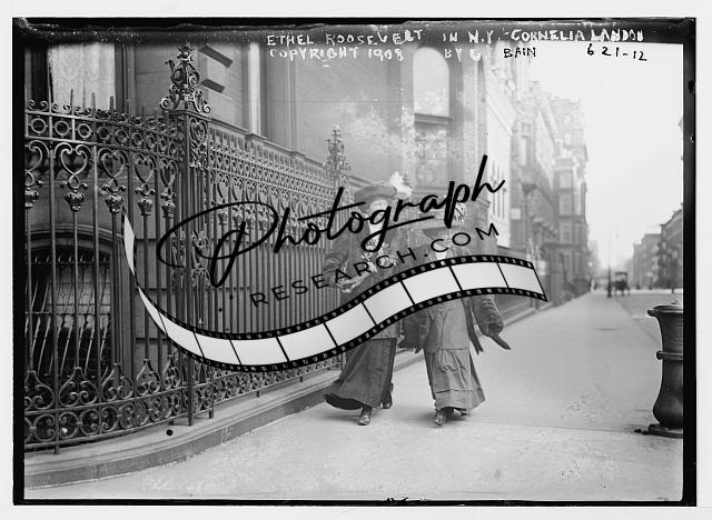 Ethel Roosevelt,Cornelia Landon on street,New York City,NYC,1908
