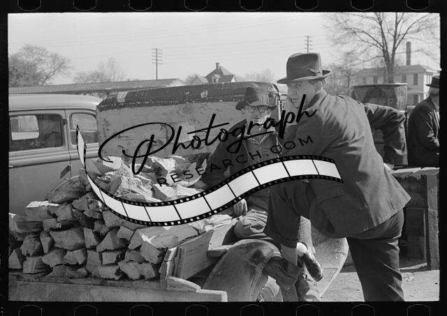 Title: Man talking to farmer with truckload of wood, Laurel, Mississippi