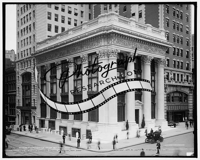Knickerbocker Trust Building,office facilities,carriages,streets,New York,c1904