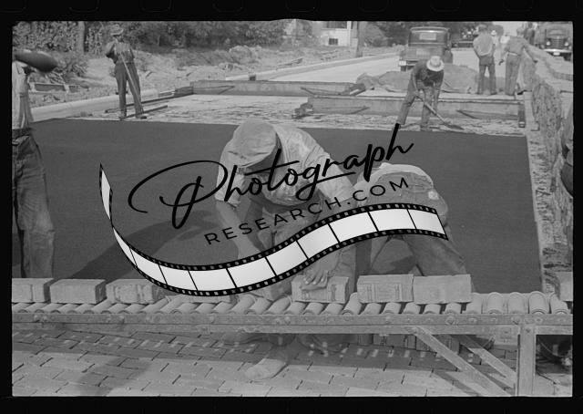 Laying brick,Route 40,central Ohio,OH,Summer 1938,Farm Security Administration,2