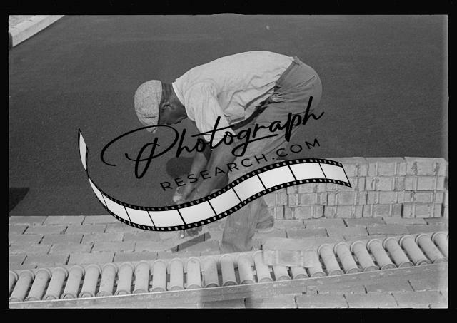 Laying brick,Route 40,central Ohio,OH,Summer 1938,Farm Security Administration,7