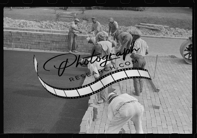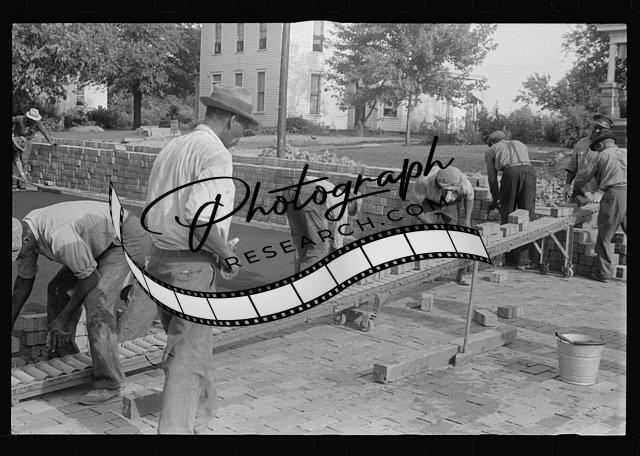 Laying brick,Route 40,central Ohio,OH,Summer 1938,Farm Security Administration,6