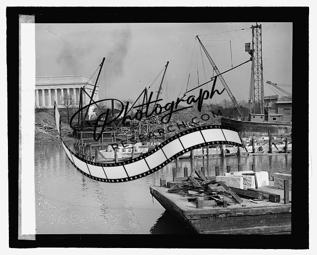 Laying foundation for Arlington Memorial Bridge,Washington,DC,Potomac River