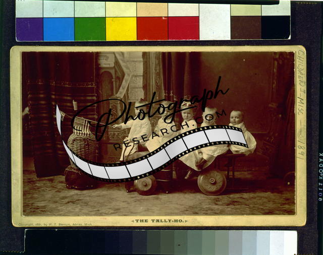 The Tally-Ho,c1891,Small Children on make-believe vehicle,US Flag,Playtime