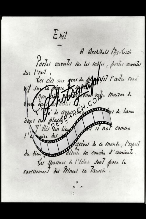 Holograph 1st page in French,Exil,by Alexis Satin-Leger Leger,Archibald MacLeish