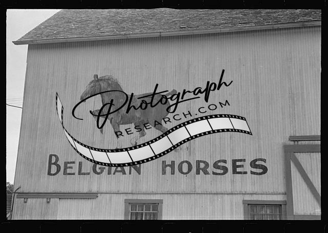 Barn advertising in central Ohio,on Route 40,Belgian Horses,OH,Summer 1938