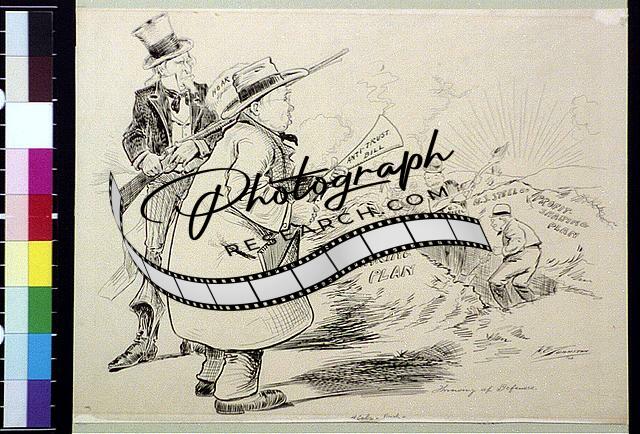 Throwing up defenses,1903,Uncle Sam,Steel Industry,Industrial Trust,Cartoon