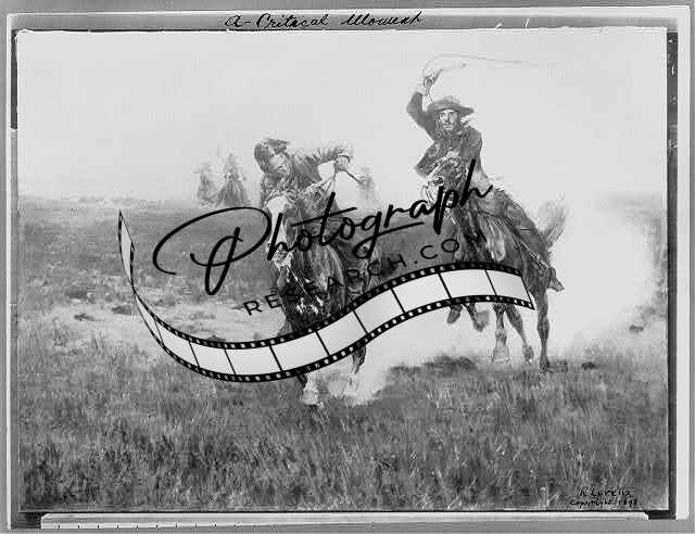 A Critical Moment,c1898,Cowboy on Horseback trying to lasso Indian on Horseback