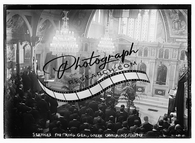 Services for King George,Greek Church,N.Y.l,March 23,1913,chandeliers,flowers