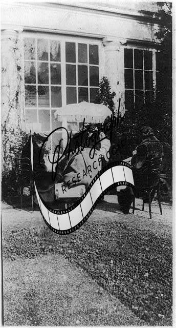 Tasker M. Bliss in chaise lounge:,2 women,umbrella,outside