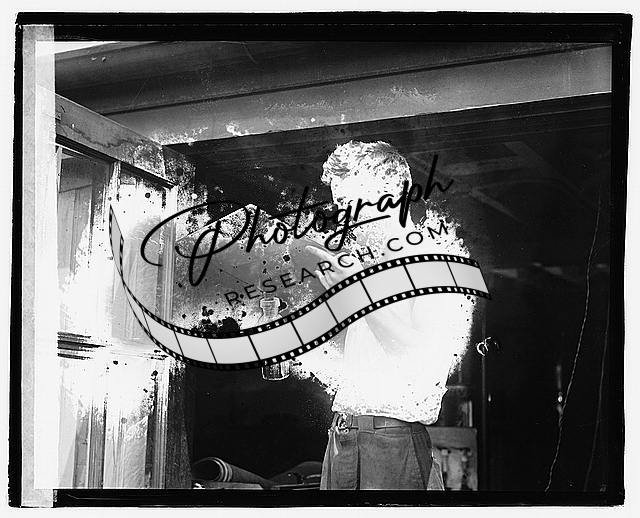 This glass negative might show streaks and other blemishes resulting from a natural deterioration in the original coatings.
