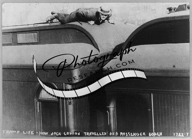 Tramp Life,how Jack London travelled on passenger coach,man atop train,1907