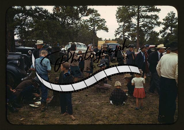 Crowd eating free barbeque dinner,Pie Town,New Mexico Fair,NM,Russell Lee,1940