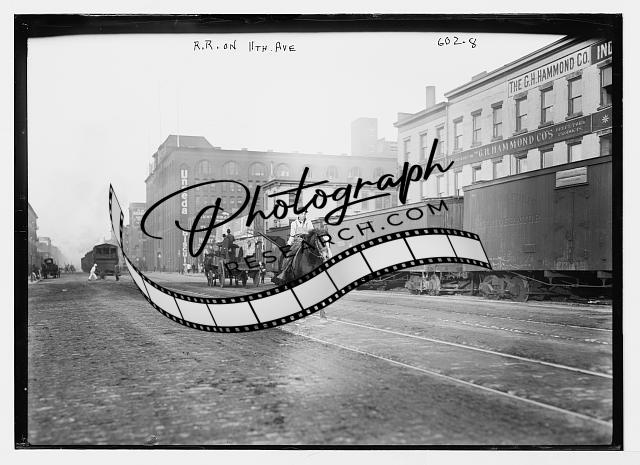 Railroad cars,11th Avenue,New York City,NYC,horse,G.H. Hammond Company