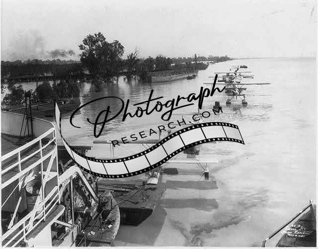 Paddle wheel steamer towing many seaplanes,1927 Flood
