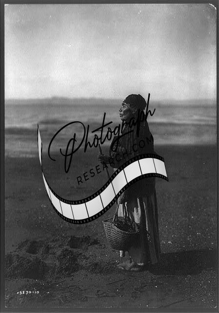 On,beach,Chinook,Indians,North America,Native,women,basket,shore,E Curtis,c1910