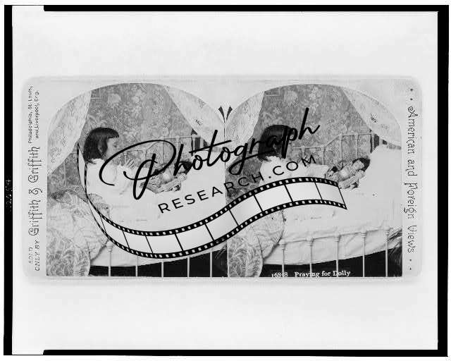 Photo of Stereograph,Praying for Dolly,Children Playing,Doll,Crib,Girl,c1897
