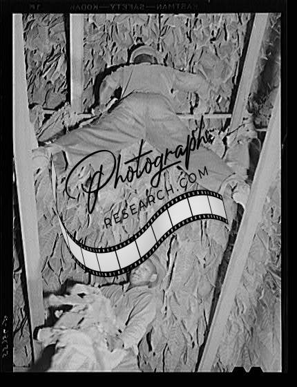 Title: Taking burley tobacco in from the fields after it has been cut, to dry and cure in the barn. On Russell Spear's farm near Lexington, Kentucky