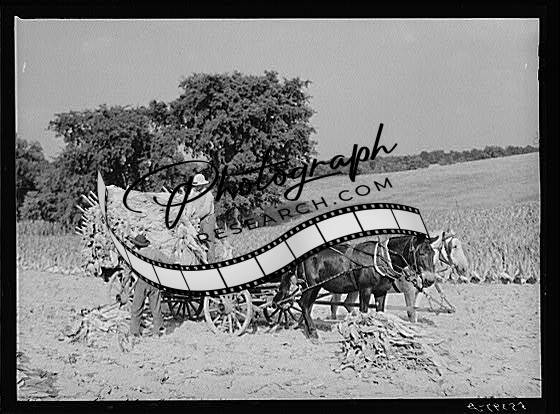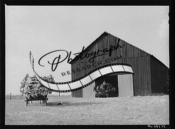Title: Taking burley tobacco in from the fields after it has been cut to dry and cure in the barn. On Russell Spear's farm near Lexington, Kentucky