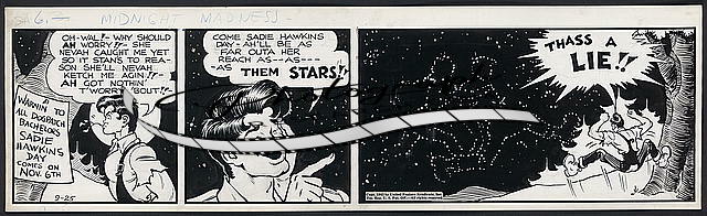 Li'l Abner.] Midnight madness. Warnin to all Dogpatch bachelors - Sadie Hawkins Day comes on Nov. 6th