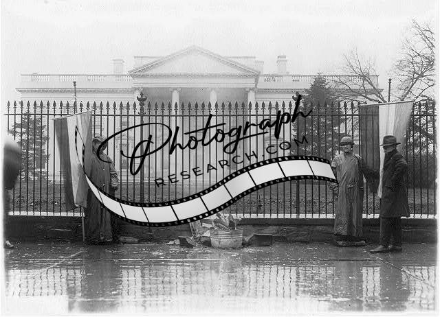 Two suffragettes,bonfire at front gate,White House,Washington,D.C.,c1919