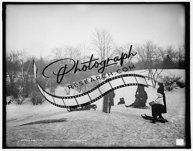 Coasting,sledding,children playing,snow,winter,Central Park,New York,NY,1900