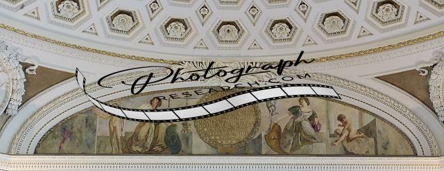 Title: [Northeast Pavilion, The Pavilion of the Seals. Left detail of Mural in Lunette devoted to the Treasury Department and Department of State by William Brantley Van Ingen. Library of Congress Thomas Jefferson Building, Washington, D.C.]