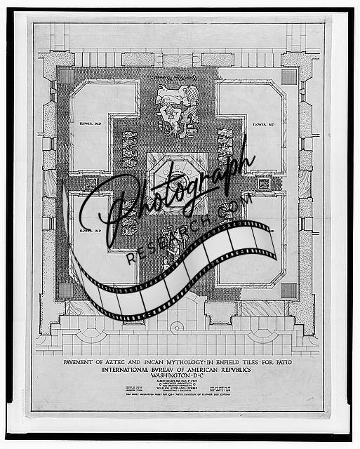 Organization's building ("International Bureau of American Republics"), 17th Street and B Street (now Constitution Avenue), N.W., Washington, D.C. Pavement of Aztec and Incan mythology