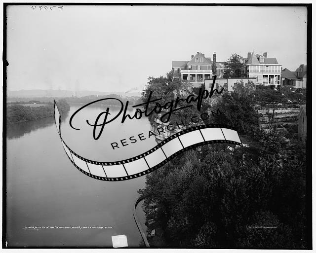 Bluffs,Tennessee River,cliffs,buildings,water bodies,trees,Chattanooga,TN,1900